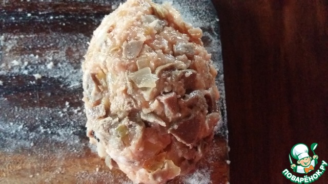 У меня был жидковатый фарш, поэтому я обваляла цеппелины в муке.