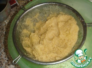 Оставшийся картофель почистить и измельчить в блендере до однородности или натереть на мелкой терке. Откинуть на мелкое сито и хорошо отжать.