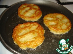 Разогреваем сковороду на среднем огне, добавить небольшое количество растительного масла. Выкладываем оладушки на сковороду. Я это делала руками, смоченными в воде, так как тесто достаточно густое. Жарить на среднем огне до появления румяной корочки (около 2-3 мин). Осторожно переворачиваем и прожариваем с другой стороны. То же самое проделайте с остальным тестом.