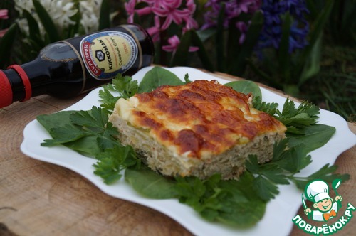 Дать запеканке немного остыть, разрезать на порционные кусочки и подавать горячей с зеленью.