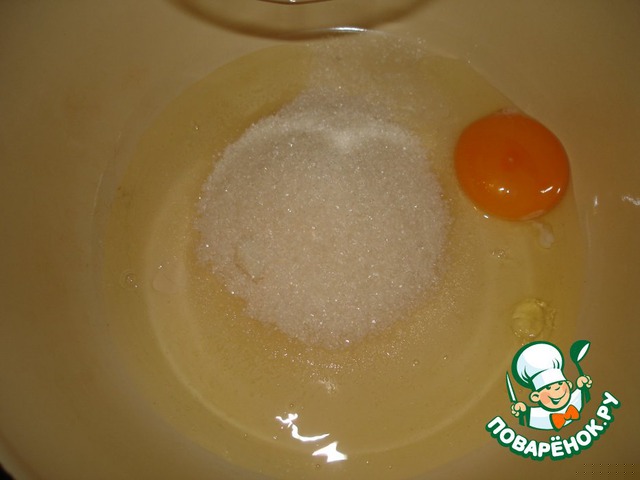 Сделать 1 корж: 1 яйцо, 0,5 стак. сахара, 0,5 стак. сметаны, 0,5 стак. муки, немножко соды, дробленые орешки.