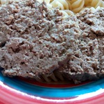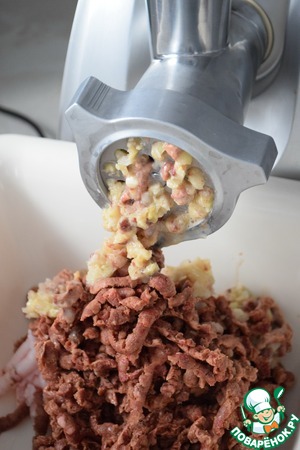 Печень (у меня была замороженная, я не размораживала) перемолоть на мясорубке.