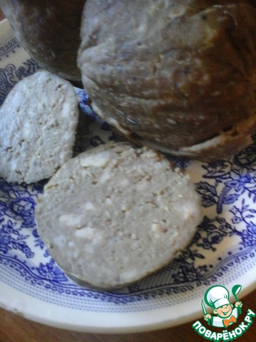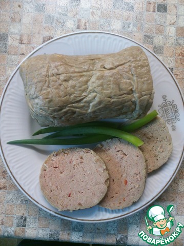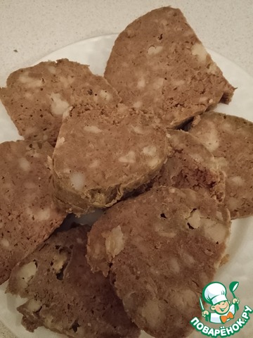 Достаем нашу колбасу, даем ей остыть полностью. Разворачиваем и убираем на пару-тройку часов в холодильник.