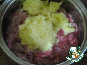 B фарш добавляем тертую на мелкой терке картошку (сырую, конечно же).