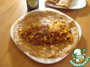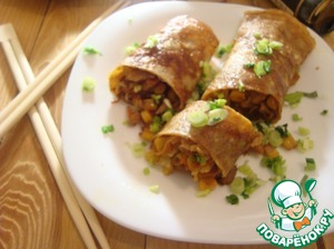 Блинчики получились очень вкусными, для меня немного соленые . Думаю немного уменьшить количество соевого соуса.