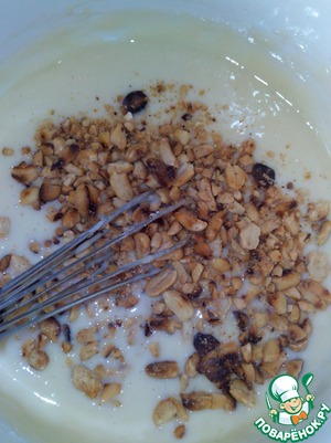 Добавляем наполнитель. В данном случае орехи. И выпекаем в смазанной раст. маслом форме при темп. 180 гр. 20-25 минут.
