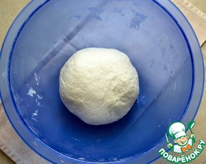 Быстро замесить тесто. Как только тесто соберется в шар, добавить 1 ст. л. растительного масла и собрать тесто в колобок. И вот здесь меня выручил "секретный" способ возможности дать тесту быстро подняться, предложенный автором! Будем ставить тесто на расстойку в микроволновку, предварительно подогрев там 100 мл воды в банке (стакане). Таким образом, создаётся необходимое для подъема теста тепло. Удивительно, но на этот процесс уйдет всего 20-25 минут.