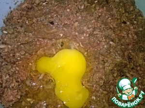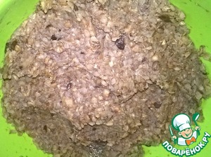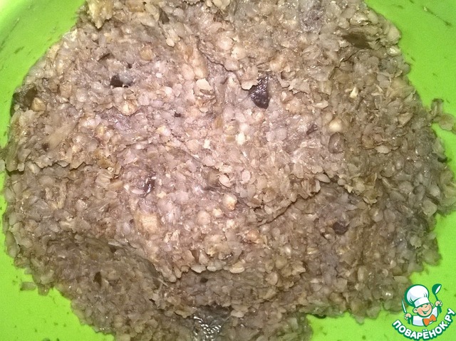 Смешать грибы с гречкой. Регулируйте количество гречки таким образом, чтобы "фарш" оставался клейким (у использовала всю гречку) -