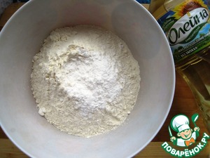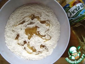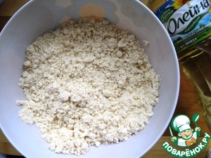 Начнём замешивать тесто таким образом, что бы получилась крошка. (Как бы втирая масло в муку).