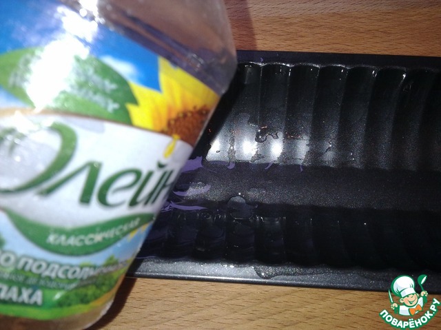 Прямоугольную форму (размером 22 x 9 см) смазываю растительным маслом.