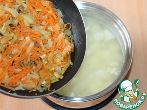 5. Приготовленную пассеровку выкладываем в кастрюлю.