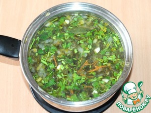 8. Измельченную свежую зелень добавить за 2 минуты до окончания готовки.