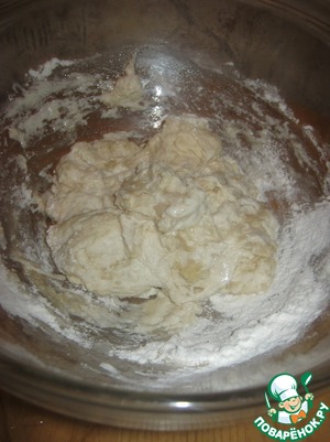 Постепенно начинаем добавлять вторую часть (большую) муки и вымешивать тесто.. После чего поставьте тесто на 3 часа в холодильник.