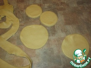 Вырезаем 4 кружка из теста (два побольше, два поменьше в диаметре)