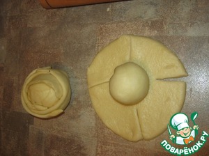 Формируем розочки, выложив маленькие шарики на большие и сложив вторые вокруг первых