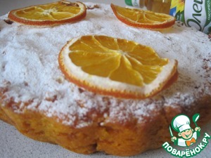Посыпаем сахарной пудрой. Я украсила чипсами из апельсина.
