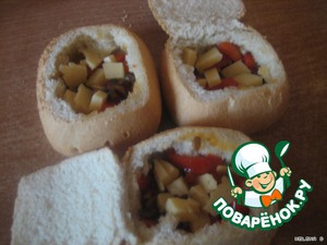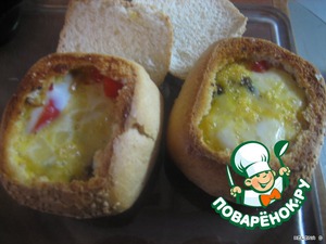 Рецепт «Хлебный сундучок с яичницей и овощами»: