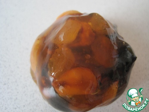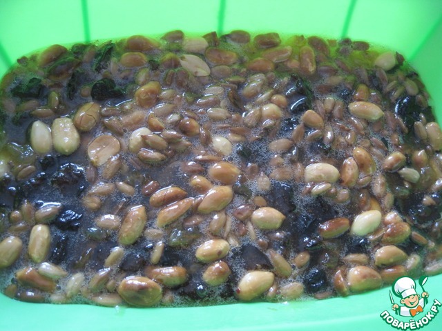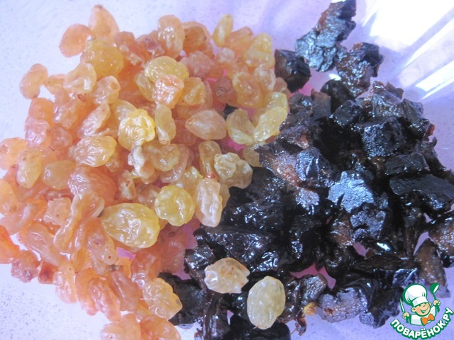 Изюм и чернослив ошпариваем кипятком. Чернослив измельчаем.