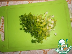 Зеленый лук вымыть, обсушить и мелко нарезать.