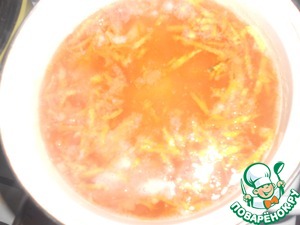 • Поставить воду для супа на огонь (2 литра). Одновременно в другой кастрюле отварить пшено до готовности ( у меня в пакетике). Вынуть пшено из пакетика, дать остыть.