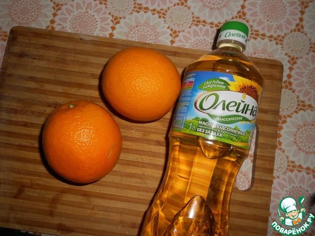 С помощью мелкой терки снять цедру с апельсинов. С апельсинов выжмиете сок (должно получиться около 200 мл сока).
