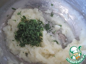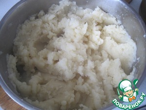 Картофель отвариваем, полностью сливаем воду, разминаем