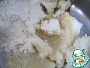 В оставшийся картофель добавляем муку, 1 ст. л. растительного масла.