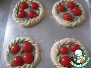 Края теста защипываем, придавая форму ватрушки. Выпекаем при 230* 10 мин.
