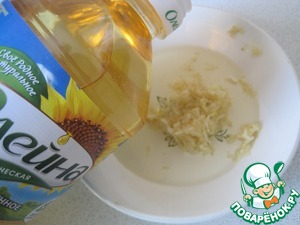Чеснок натираем на терке, смешиваем с растительным маслом.
