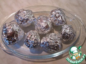 Картофель хорошо помыть, завернуть в фольгу каждую картофелину и запечь в духовке при температуре 200 градусов 40-45 минут.