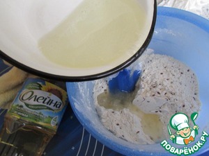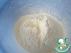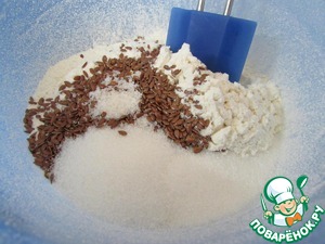 К муке добавить семена льна, сахар, соль. Все хорошо перемешать.