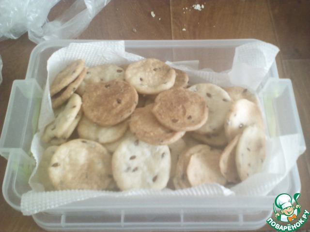 Готовое печенье извлечь из духовки. Положить в контейнер, дать остыть, затем плотно закрыть крышкой, чтобы сохранить максимально свежесть печенья.
