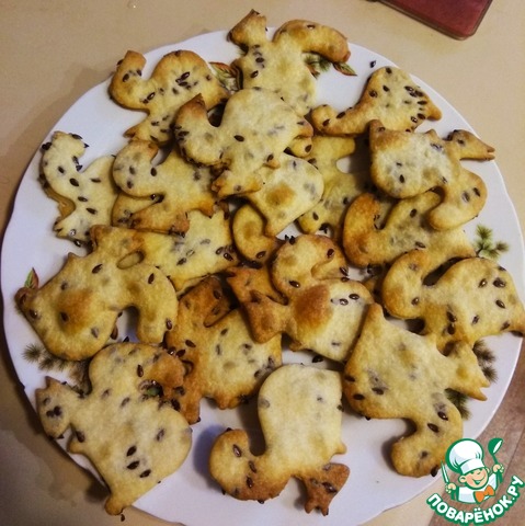 Тесто раскатать тонко и нарезать печенье любой формы.