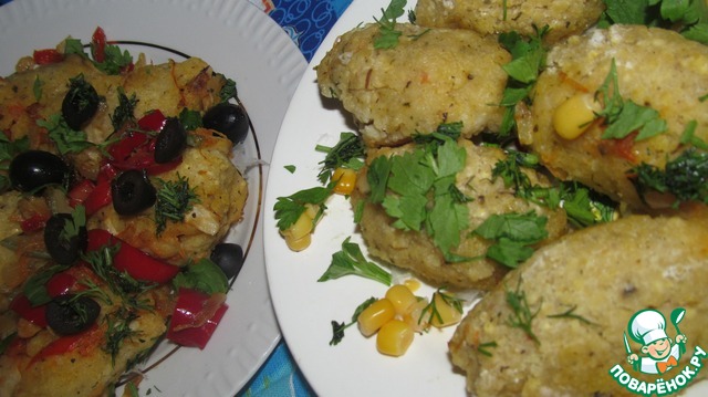 Очень нежные и ароматные котлеты из пшена с овощной и печеночной начинками.