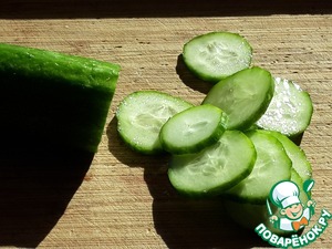 Тонкими ломтиками нарежьте свежий огурец