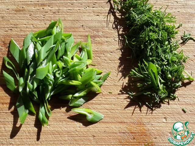 Нарежьте мелко укроп и зеленый лук