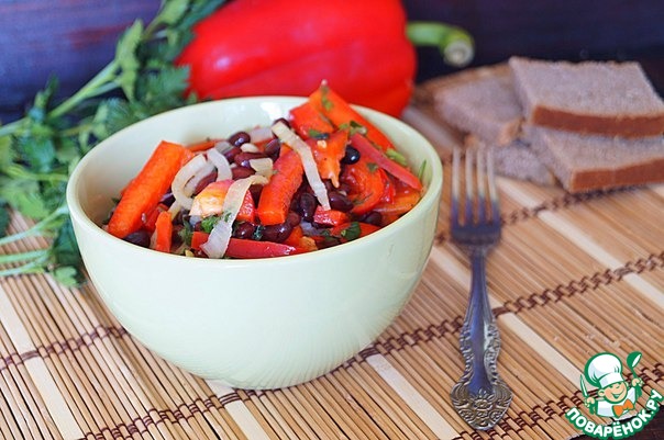 Предлагаю попробовать этот сочный и вкусный салат из овощей и фасоли. В нем содержится много витаминов, за счет фасоли он становится питательным и сытным.