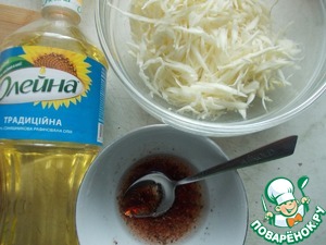 • Капусту заправляем заправкой и раскладываем по порционным тарелкам.