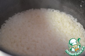 Рис промыть и отварить до полной готовности. Рис я варю в мультиварке на режиме "Рис"