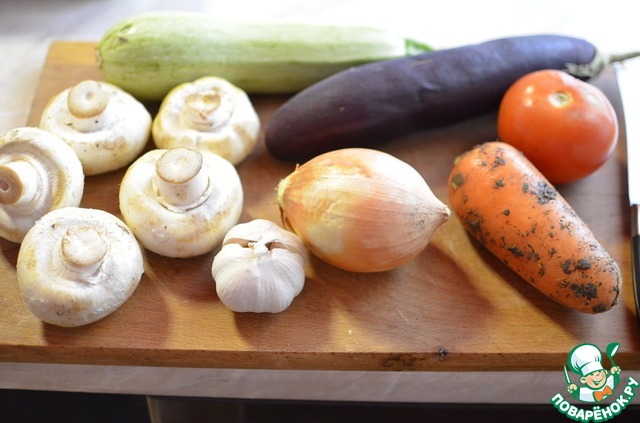 Лук, чеснок, морковь почистить. Все овощи порезать в произвольной форме. Чеснок, каждый зубчики порезать на две половины, если зубчики не крупные, можно не резать их.