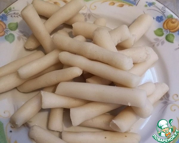 Такие рисовые брусочки называются токки - национальная корейская кухня.