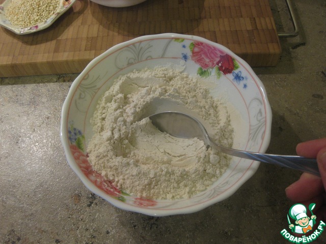 Перемешать просеянную муку с крахмалом, разрыхлителем и солью.