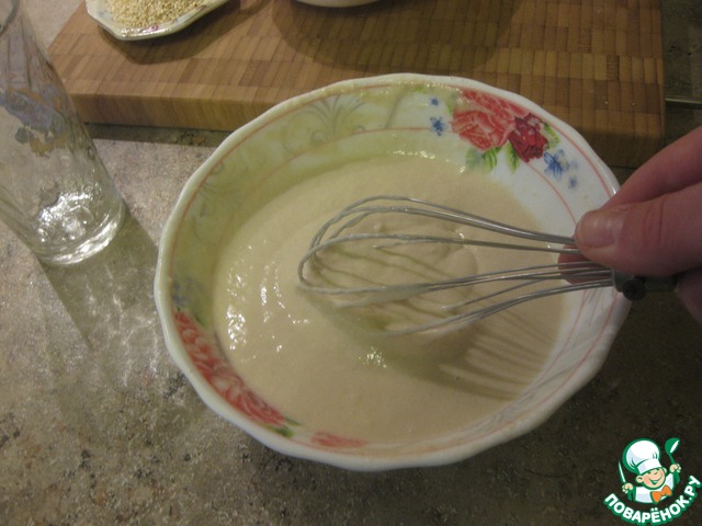 Вымешать тесто. Слишком жидким кляр быть не должен – тесто должно получиться примерно как на оладьи.
