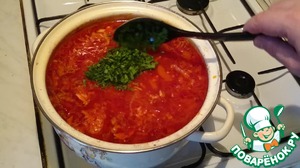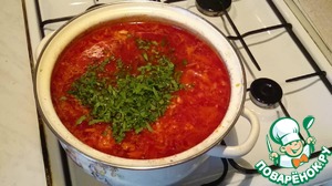 1 минуту даём прокипеть и выключаем. Даём борщу постоять 20 минут, не закрывая крышкой (иначе борщ потеряет свой цвет).