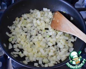 Лук нарезать кубиками и слегка обжарить на растительном масле до легкого золотистого цвета.