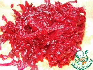 Отварную свеклу почистить и натереть на крупной (!) терке.