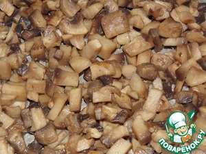 • Шампиньоны помыть, почистить, мелко порезать и обжарить на растительном масле.