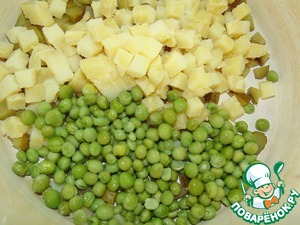 • Замороженный зеленый горошек отварить в небольшом количестве соленой воды. Такой горошек нежнее и слаще, чем консервированный.