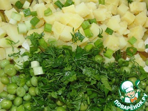 • Зеленый лук, петрушку и укроп мелко порезать.