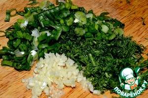 Чеснок и зелень измельчить.